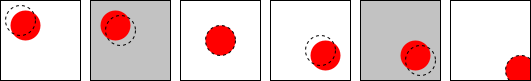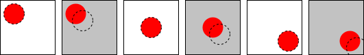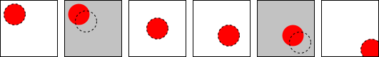 (Gray frames are frames where we don’t do an update and reuse the previous image. The dotted circles show the theoretical position of the moving ball at the time of the frame.)
